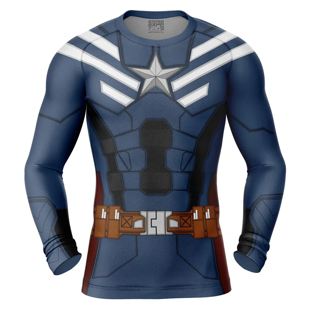 Captain America Winter Soldier Marvel Long Sleeve Rash Guard Compression Shirt