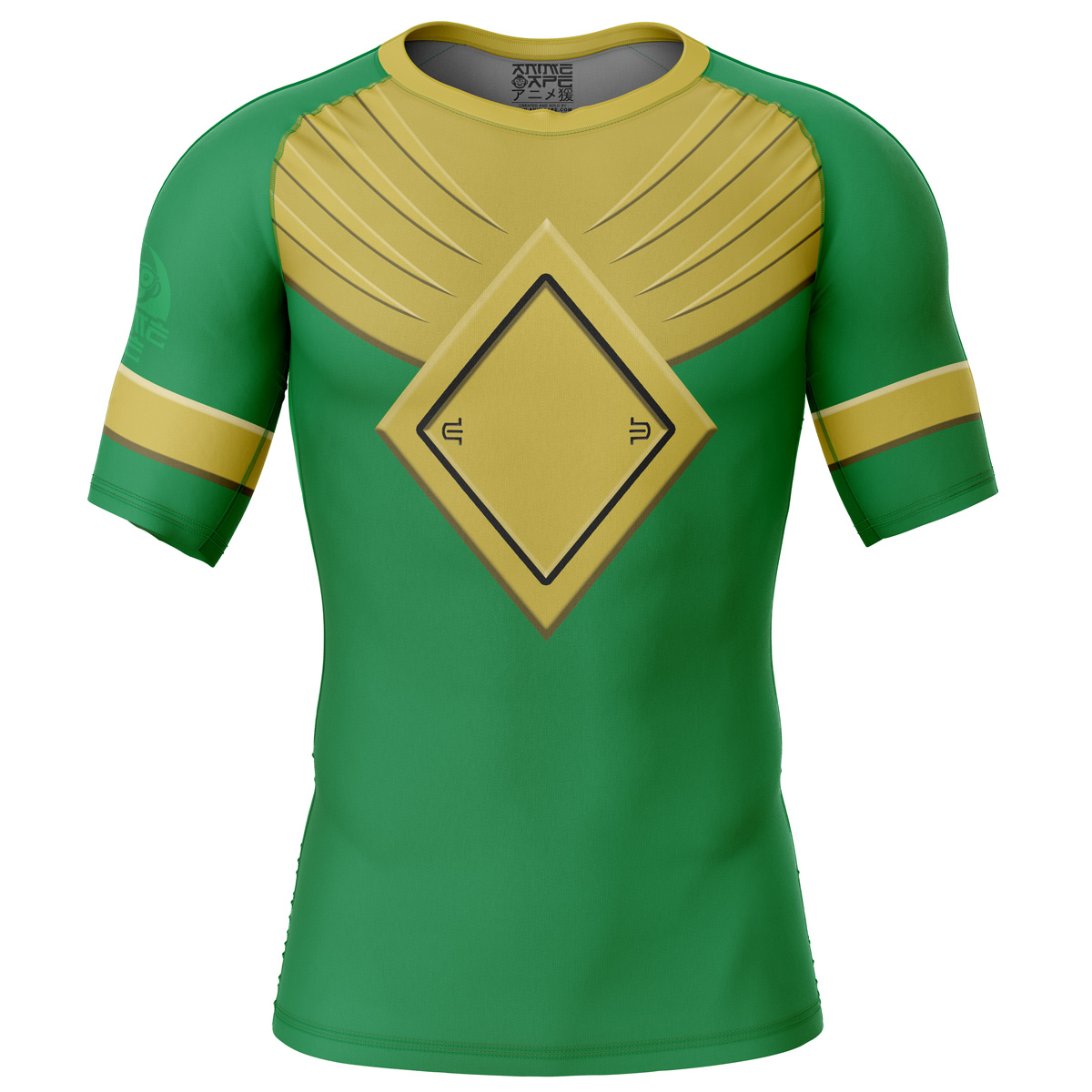 Green Ranger Gold Shield Mighty Morphin Power Rangers Short Sleeve Rash Guard Compression Shirt