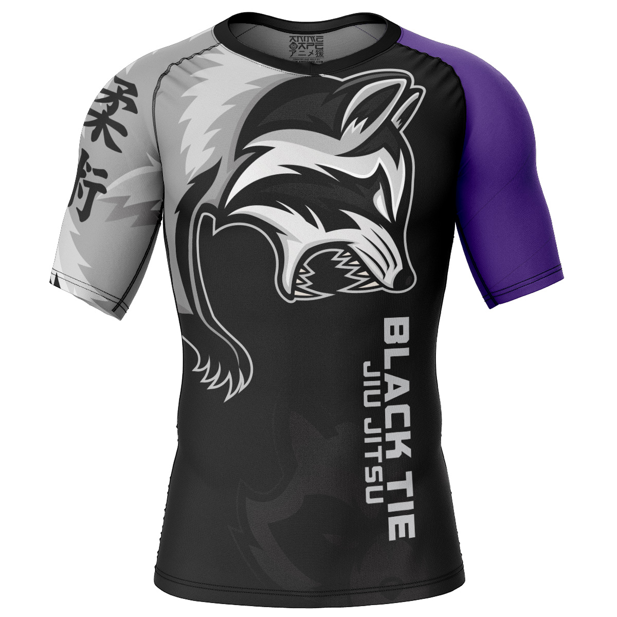 Rabid Raccoon Black Tie Purple Belt Short Sleeve Rash Guard