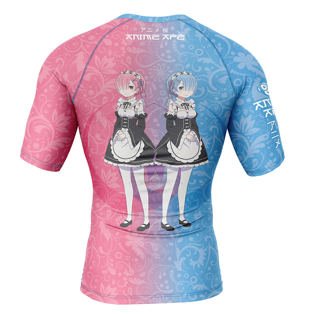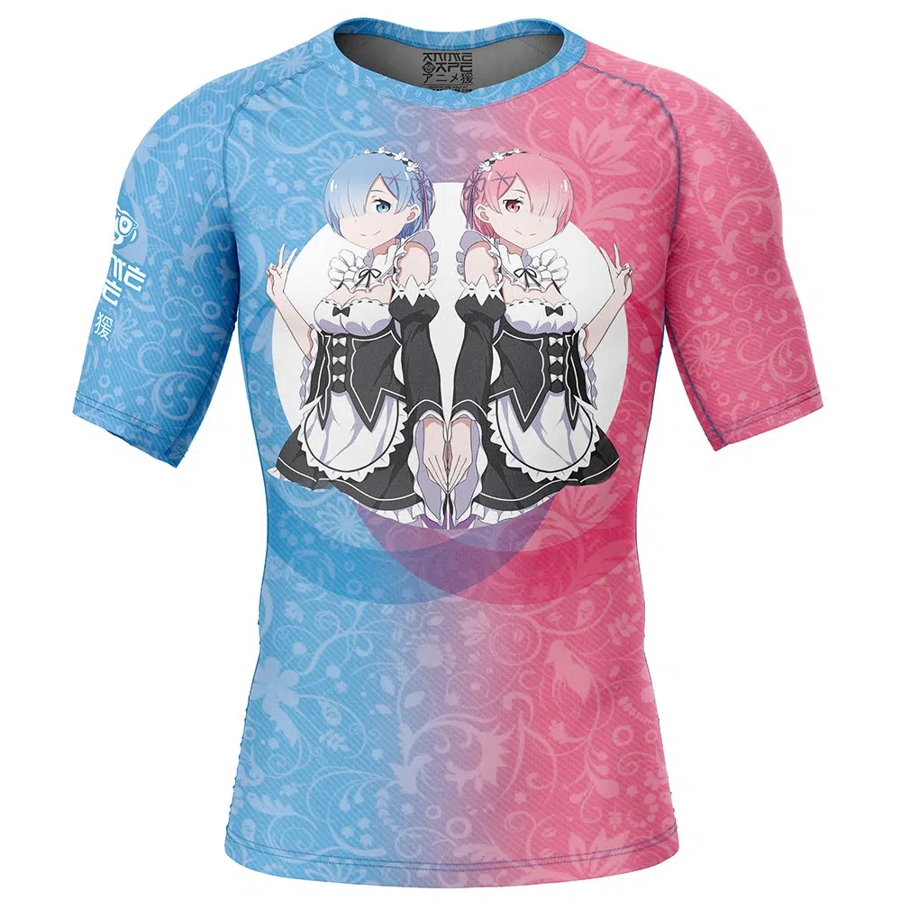 Rem and Ram Re Zero Kara Hajimeru Isekai Seikatsu Short Sleeve Rash Guard Compression Shirt