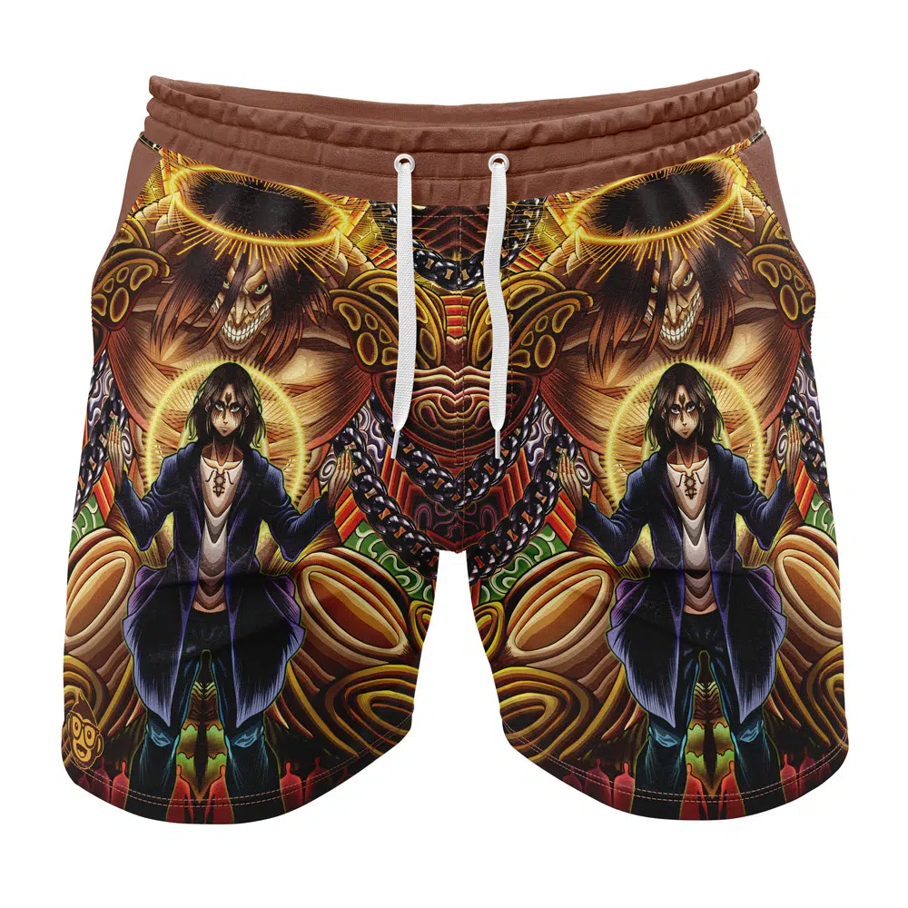 Trippy Eren Yeager Timeskip Attack on Titan Gym Shorts